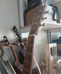 Christophe estime que le travail à fournir pour faire une guitare de gaucher est sensiblement le même que pour une guitare de droitier